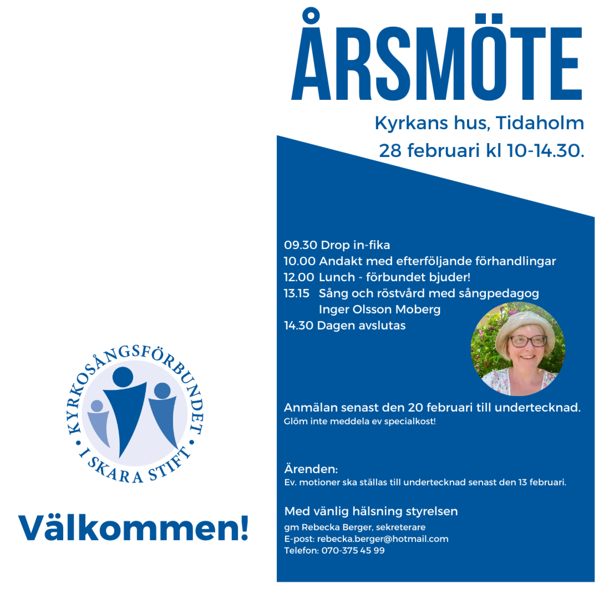 Lördagen den 28 februari har Kyrkosångsförbundet i Skara stift årsmöte i Kyrkans hus i Tidaholm.